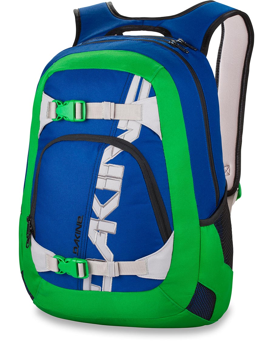 Dakine Explorer to idealny plecak na wypady jak i do szkoły. Posiada pojemną kieszeń główną z przegrodą na laptopa 15", kieszeń szybkiego dostępu a w niej kieszeń organizer, pasy do zamocowanie deski lub kasku, dwie boczne kieszenie z siateczki oraz miękko wyłożoną kieszeń na okulary. Plecak ma miękko wyłożone plecy oraz szelki z klamrą.